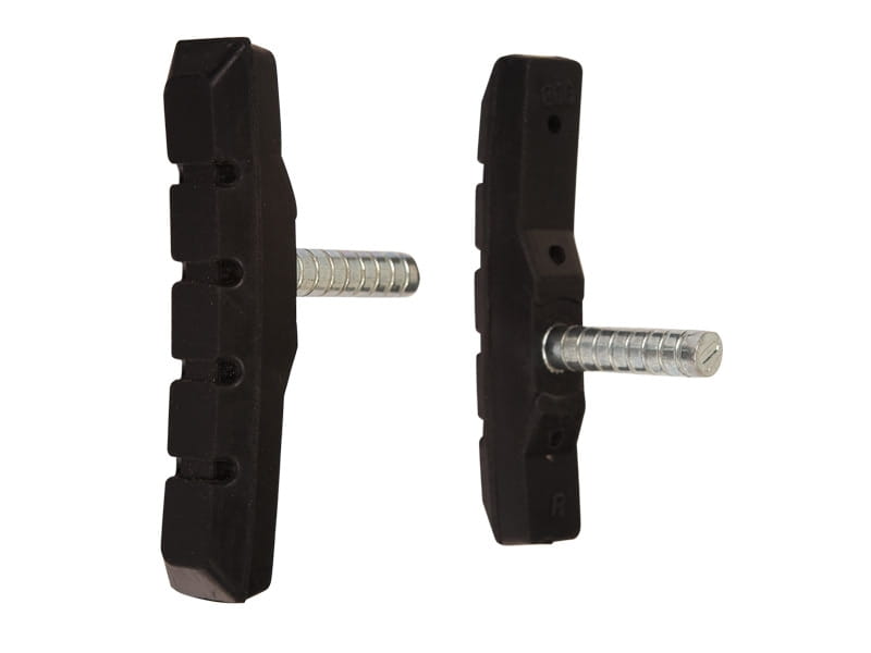Klocki hamulcowe do hamulców typu cantilever. Klocki asymetryczne wykonane z wysokiej jakości gumy osadzonej na karbowanym metalowym trzpieniu.
