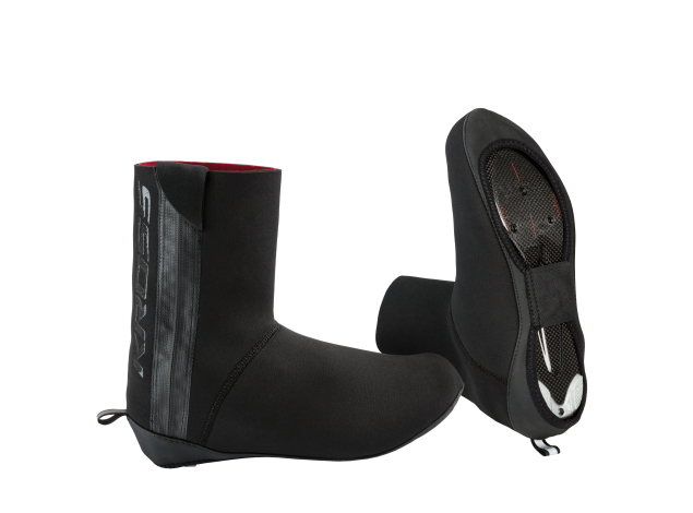 Ochraniacze wykonane z 3mm Neoprenu. Ochronę przed przecieraniem przy chodzeniu stanowi warstwa mocnego materiału. Zapewniają duży komfort termiczny przy niskich temperaturach. Anatomicznie umieszczony zamek nie uwiera w ścięgno Achillesa. Dodatkowe elementy odblaskowe zwiększają widoczność na drodze.