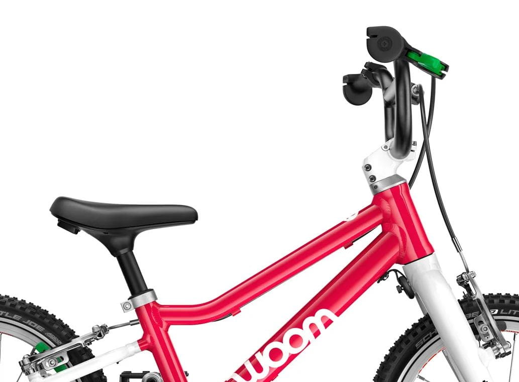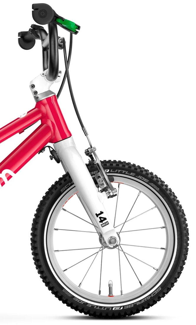 - Zielona klamka hamulca i klocki hamulcowe, dla identyfikacji wizualnej tylnego hamulca, to przyda się na kolejnym etapie rowerowej edukacji